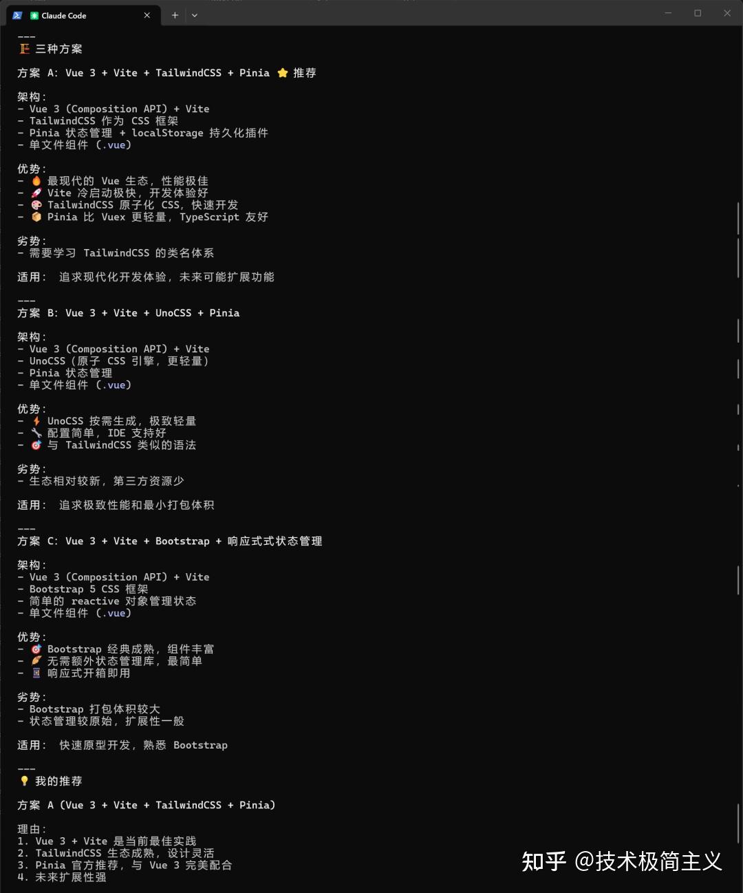 在需求收集完成后,系统通常会给出 2–3 个实现方案供选择。