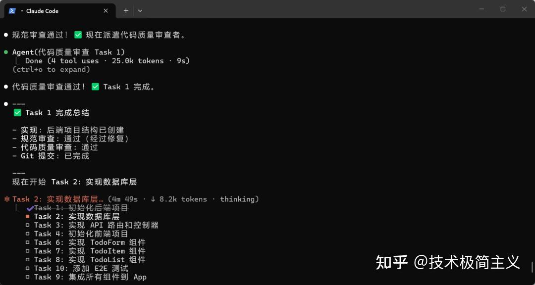 每个任务完成后,会自动触发两阶段代码审查流程: