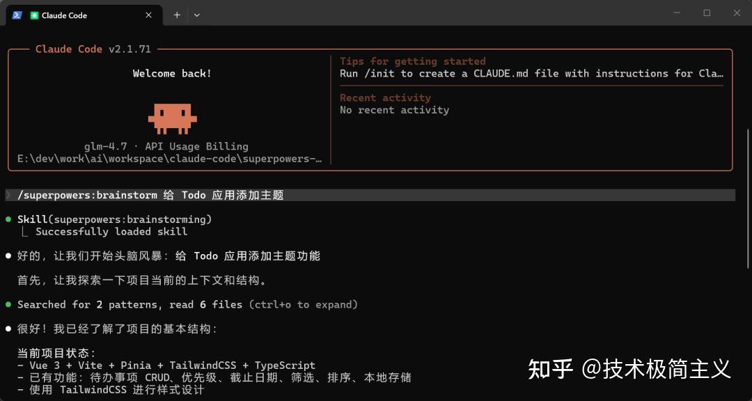 /superpowers:brainstorm 给 Todo 应用添加主题。运行 Claude Code 命令: